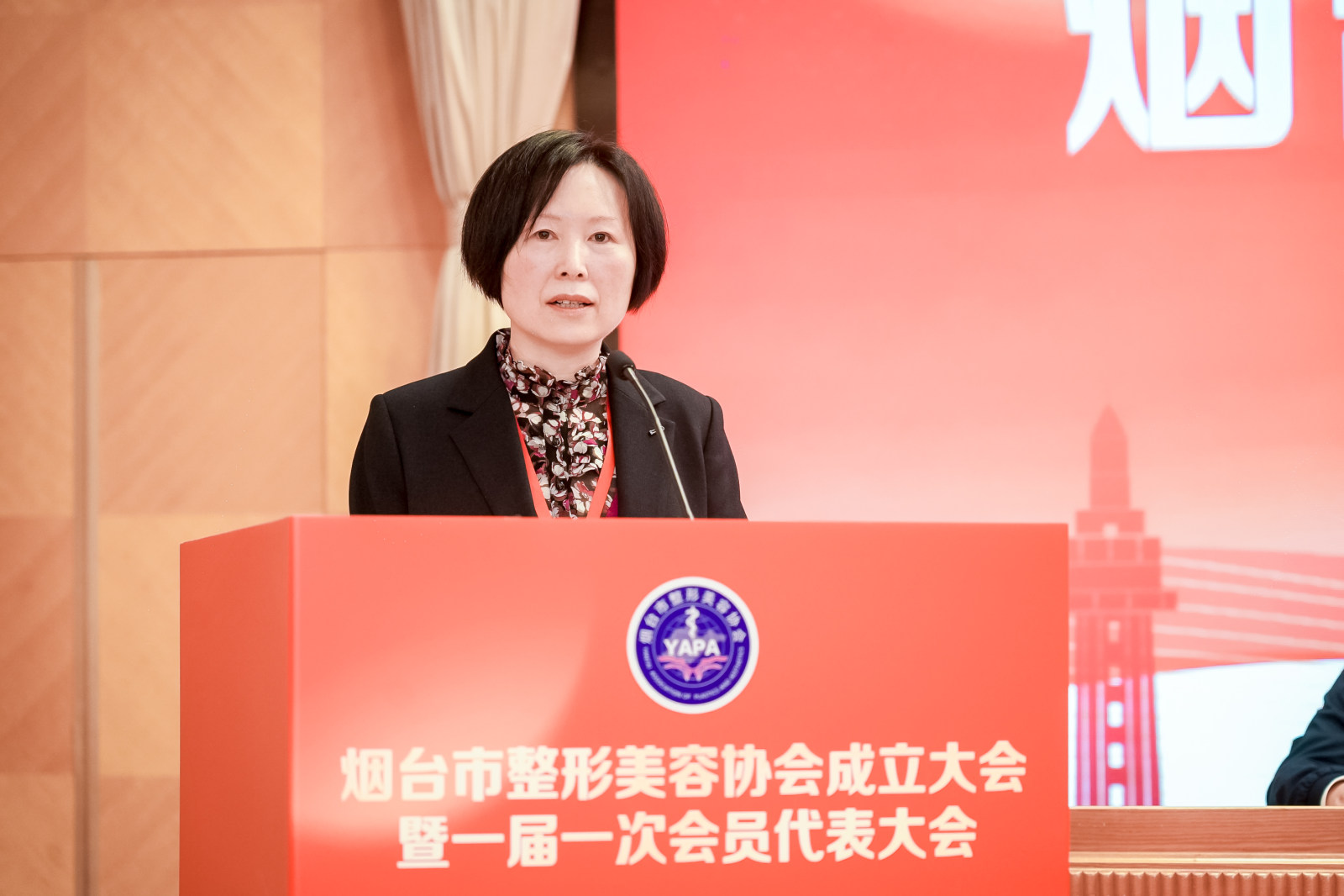 中国整形美容协会副秘书长、投诉协调办公室主任吴升山出席大会并致辞,吴升山主任表示,烟台市整形美容协会在烟台市政府及相关部门的关心和支持下成功成立,标志着烟台市整形美容行业向着正规化、标准化、法制化又迈出了重要一步。目前中国整形美容协会已在烟台成立了“中国整形美容协会医疗纠纷投诉协调(烟台)工作站”,将联合其他部门面向烟台市开展医疗美容投诉纠纷协调工作,为医疗美容机构服务,为消费者服务,为政府排忧解难,化解医患矛盾,促进社会稳定。未来将会尽最大可能支持烟台市整形美容协会的工作,在资源、技术、信息、管理,以及面向全国开展相关会议、论坛、培训以及万里行公益活动等各方面提供支持和帮助,希望烟台市整形美容协会依靠党的领导和社会各界的支持,团结美业同仁共同把烟台打造成风清气正,和谐发展的医美城市,共同为中国整形美容事业健康发展做出贡献。